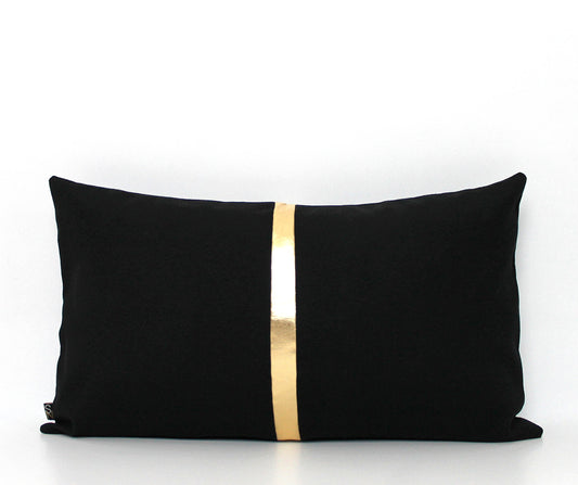 Black and Gold Colorblock Pillow Cover - Custom Metallic Stripe Color
