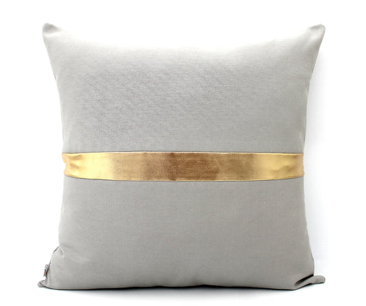 Light Grey and Gold Colorblock Pillow Cover - Custom Metallic Stripe Color