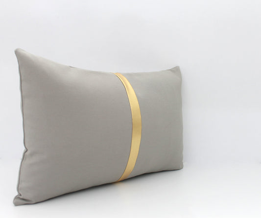 Light Grey and Gold Colorblock Lumbar Pillow Cover - Custom Metallic Stripe Color