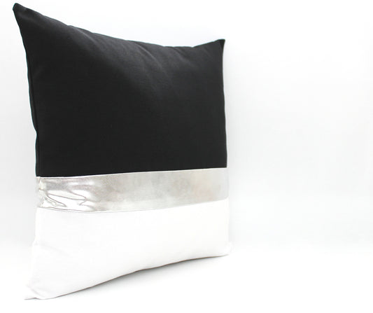 Black, white and Metallic Silver Colorblock Pillow Cover - Custom Metallic Stripe Color