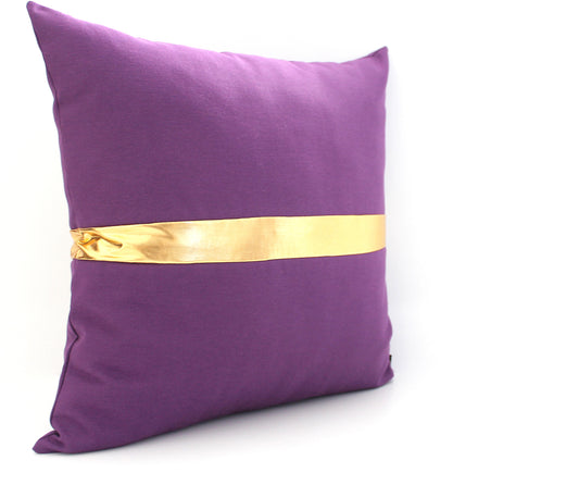 Dark Purple and Gold Colorblock Pillow Cover, Custom Metallic Stripe