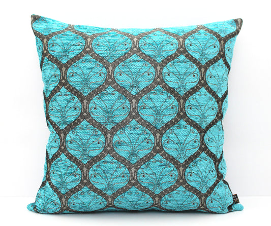 Turquoise Blue and Pewter Grey Ottoman Turkish Pillow Cover