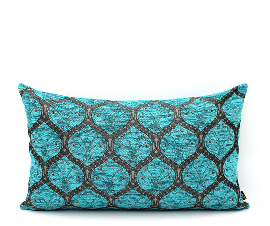 Petrol Blue and Gold Ottoman Turkish Lumbar Pillow Cover