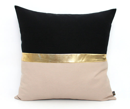 Stone, Black and Metallic Gold Colorblock Pillow Cover
