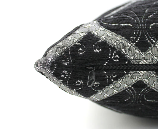 Black and Silver Ottoman Turkish Pillow Cover