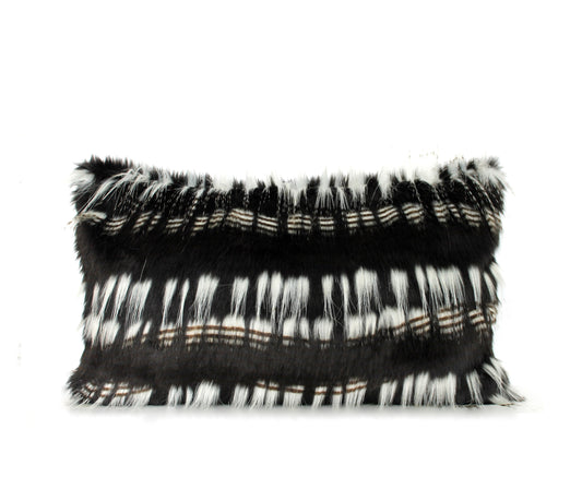 Luxury Black and White Faux Fur Pillow Cover - Custom Backing Color