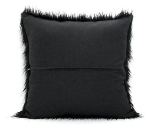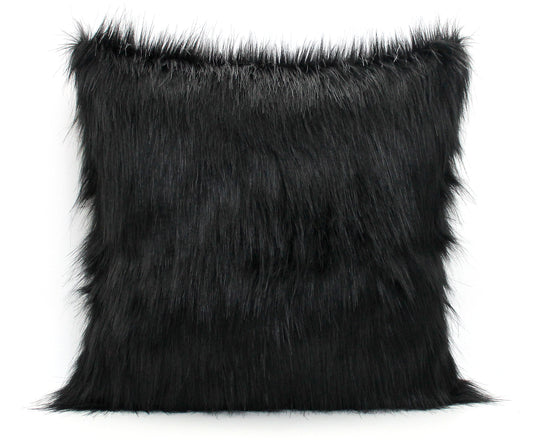 Luxury Black Faux Fur Pillow Cover - Custom Backing Color