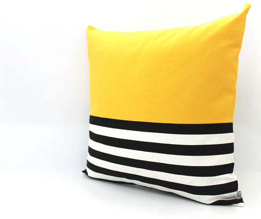 Yellow with Black and White Stripes Colorblock Pillow Cover