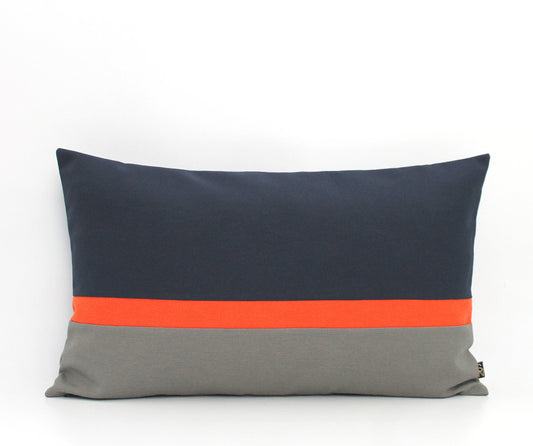 Navy Blue, Orange and Grey Color Block Lumbar Pillow Cover