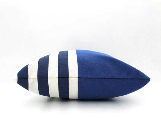 Dark Cobalt and Navy Blue and White Stripe Colorblock Pillow Cover
