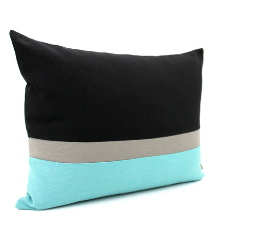 Black, Dark Grey and Light Teal Color Block Pillow Cover