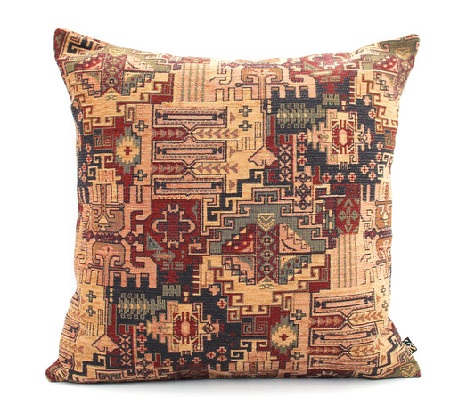 Beige and Brown Woven Turkish Kilim Lumbar Pillow Cover