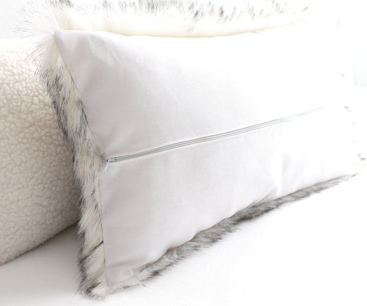 Siberian Wolf Faux Fur Lumbar Pillow Cover - Custom Backing Color