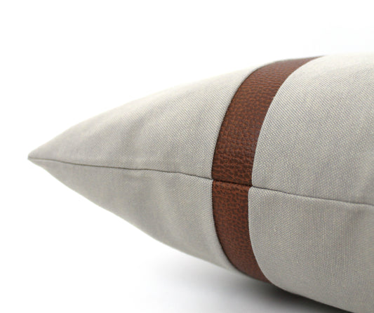 Grey and Faux Brown Leather Colorblock Pillow Cover - Custom Colors