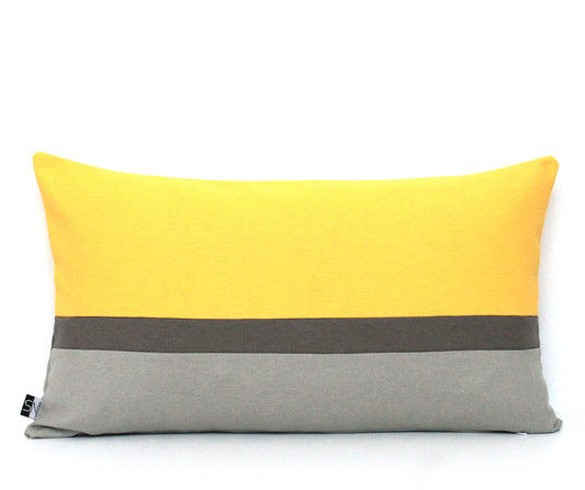 Black and Charcoal Blue and Yellow Color Block Pillow Cover