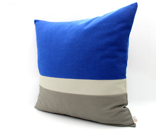 Dark Cobalt Blue and Grey Color Block Pillow Cover