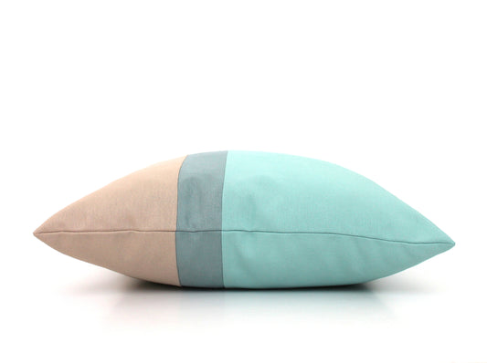 Aqua, Blue Grey and Stone Colorblock Pillow Cover