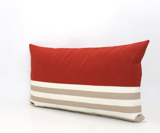 Rust with Beige and Off-White Stripes Colorblock Lumbar Pillow Cover