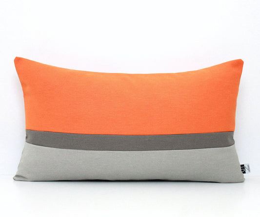 Tangerine Orange and Grey Color Bblock Lumbar Pillow Cover