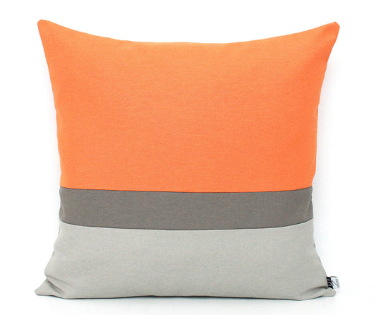 Tangerine Orange and Grey Colorblock Pillow Cover