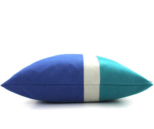 Dark Cobalt Blue, Light Grey and Dark Teal Color Block Pillow Cover
