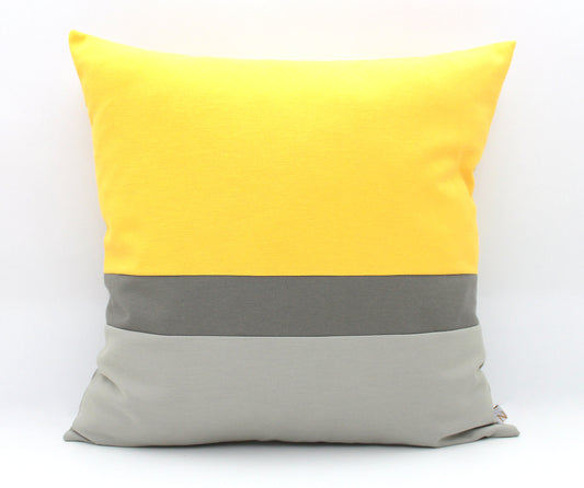 Yellow with Grey and White Stripes Colorblock Pillow Cover