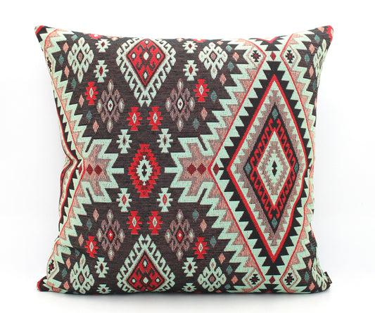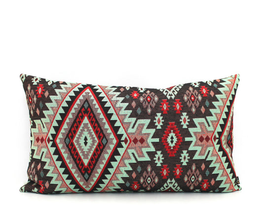 Black and Red Turkish Kilim Lumbar Pillow Cover
