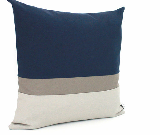 Navy Blue, Orange and Grey Colorblock Pillow Cover