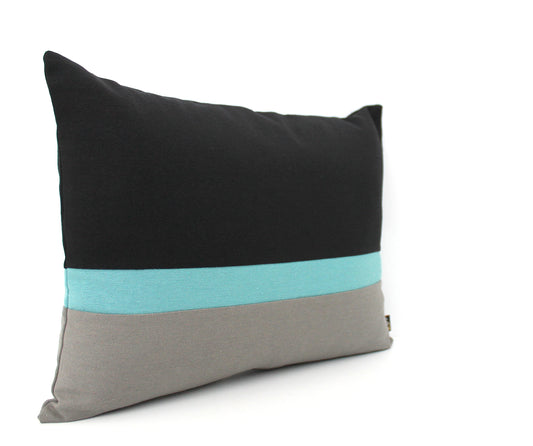 Black, Light Teal and Dark Grey Colorblock Pillow Cover