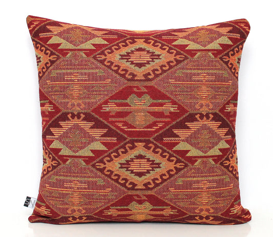 Burgundy Red Turkish Pillow Cover - Luxury Boho Chenille Throw