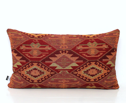 Dark Red Woven Turkish Kilim Lumbar Pillow Cover