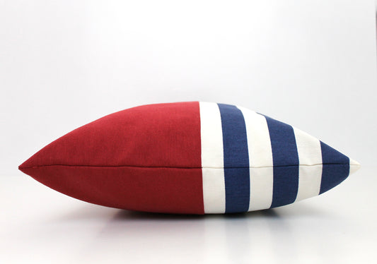 Maroon, Navy Blue and White Stripes Colorblock Lumbar Pillow Cover