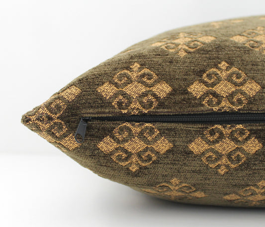 Khaki Green High End Turkish Ottoman Pillow Cover - Luxurious Boho Throw
