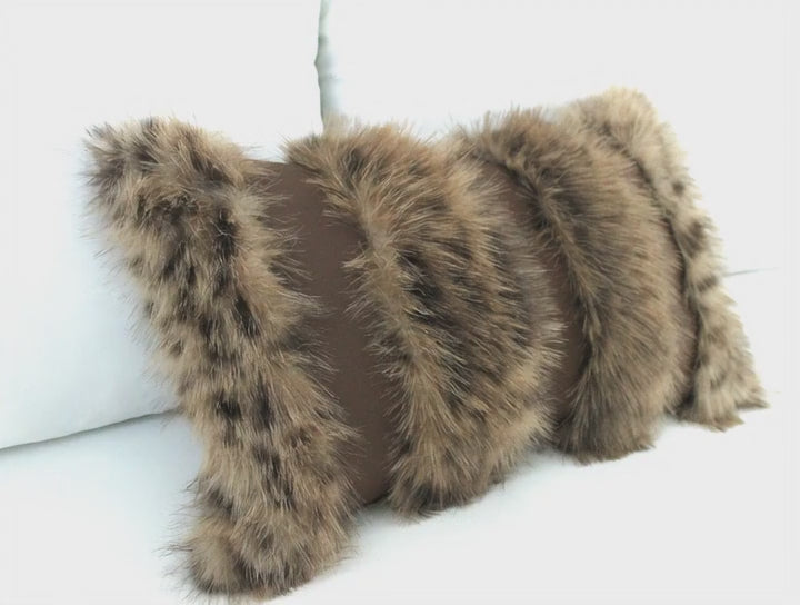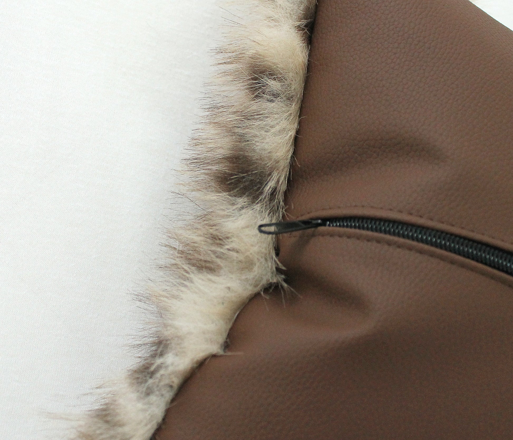 Lynx Faux Fur & Chestnut Leather Pillow Cover