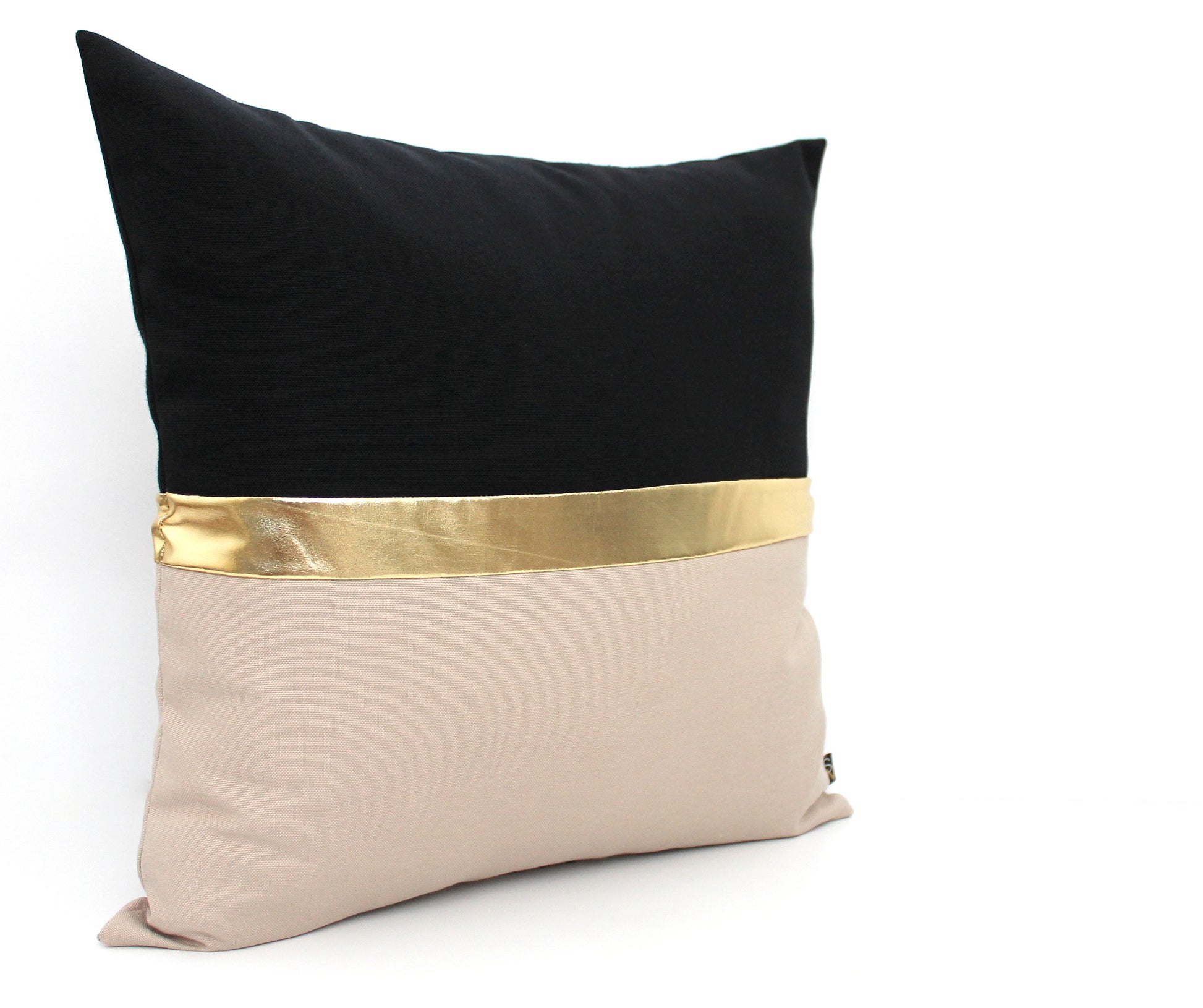 Stone, Black and Metallic Gold Colorblock Pillow Cover