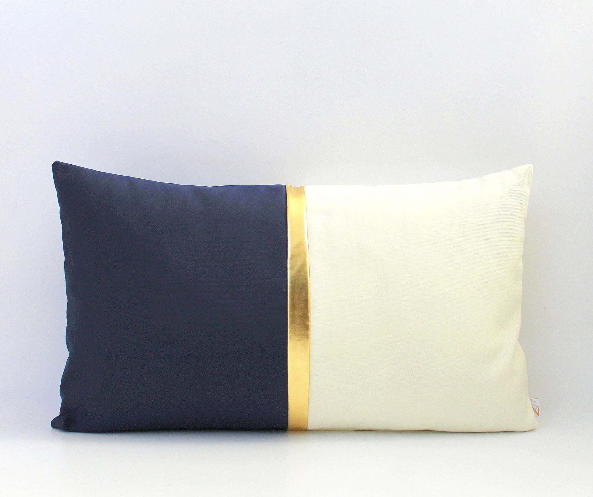 Navy Blue, Cream and Metallic Gold Colorblock Lumbar Pillow Cover