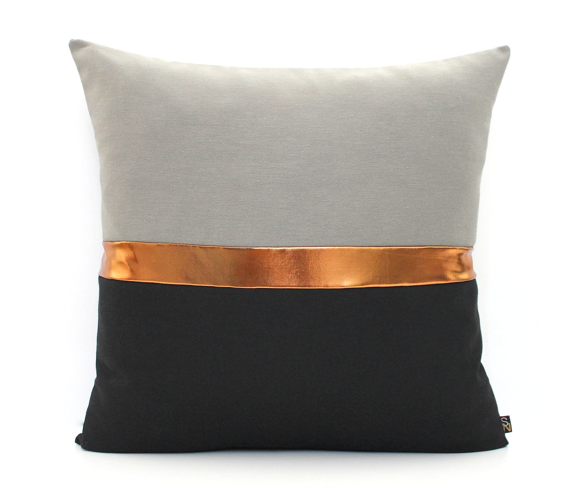 Dark Grey, Black and Copper Colorblock Lumbar Pillow Cover - Custom Metallic Stripe Color