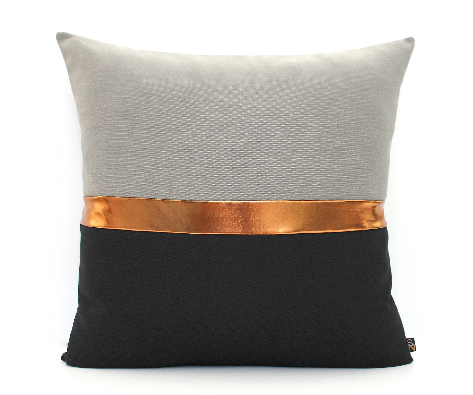 Dark Grey, Black and Copper Colorblock Pillow Cover - Custom Metallic Stripe Color