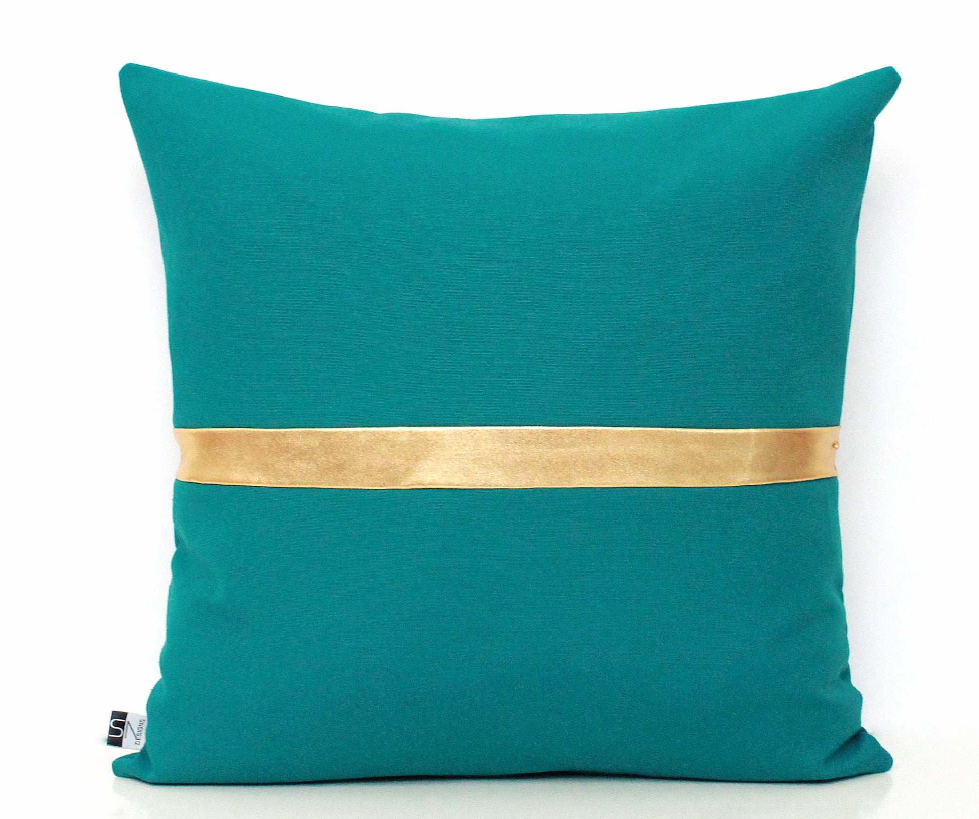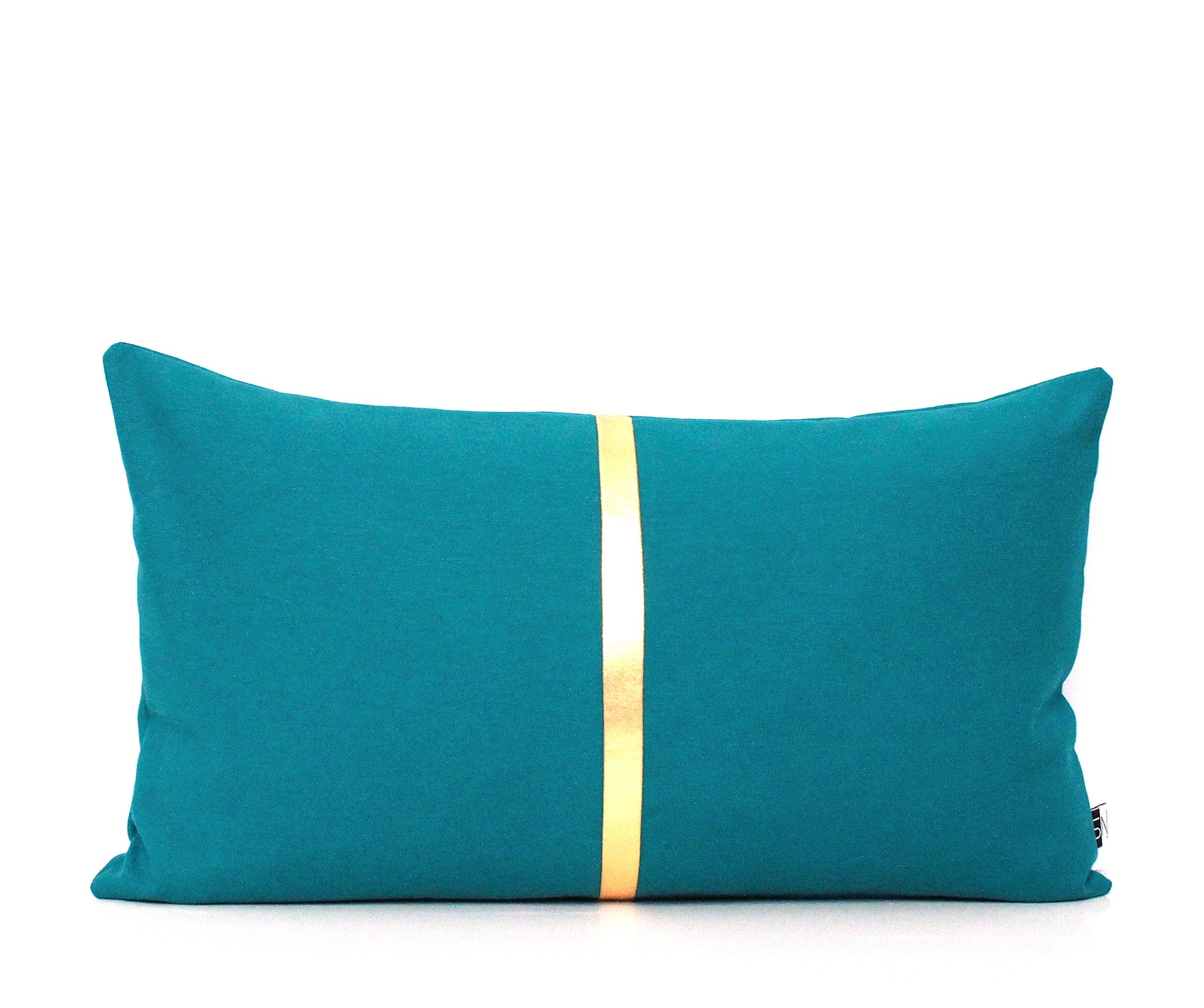 Dark Teal and Copper Colorblock Pillow Cover - Custom Metallic Stripe Color