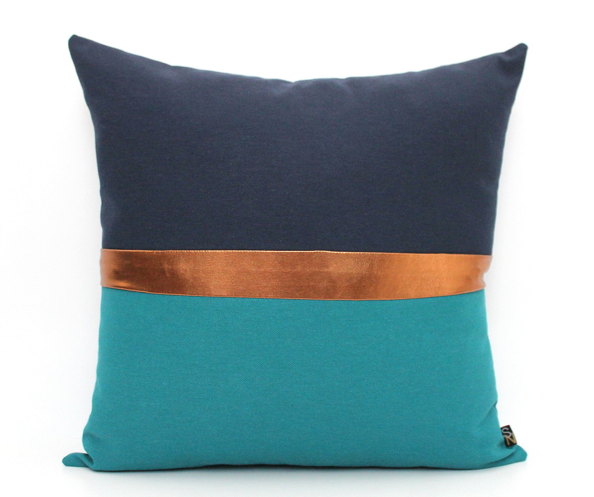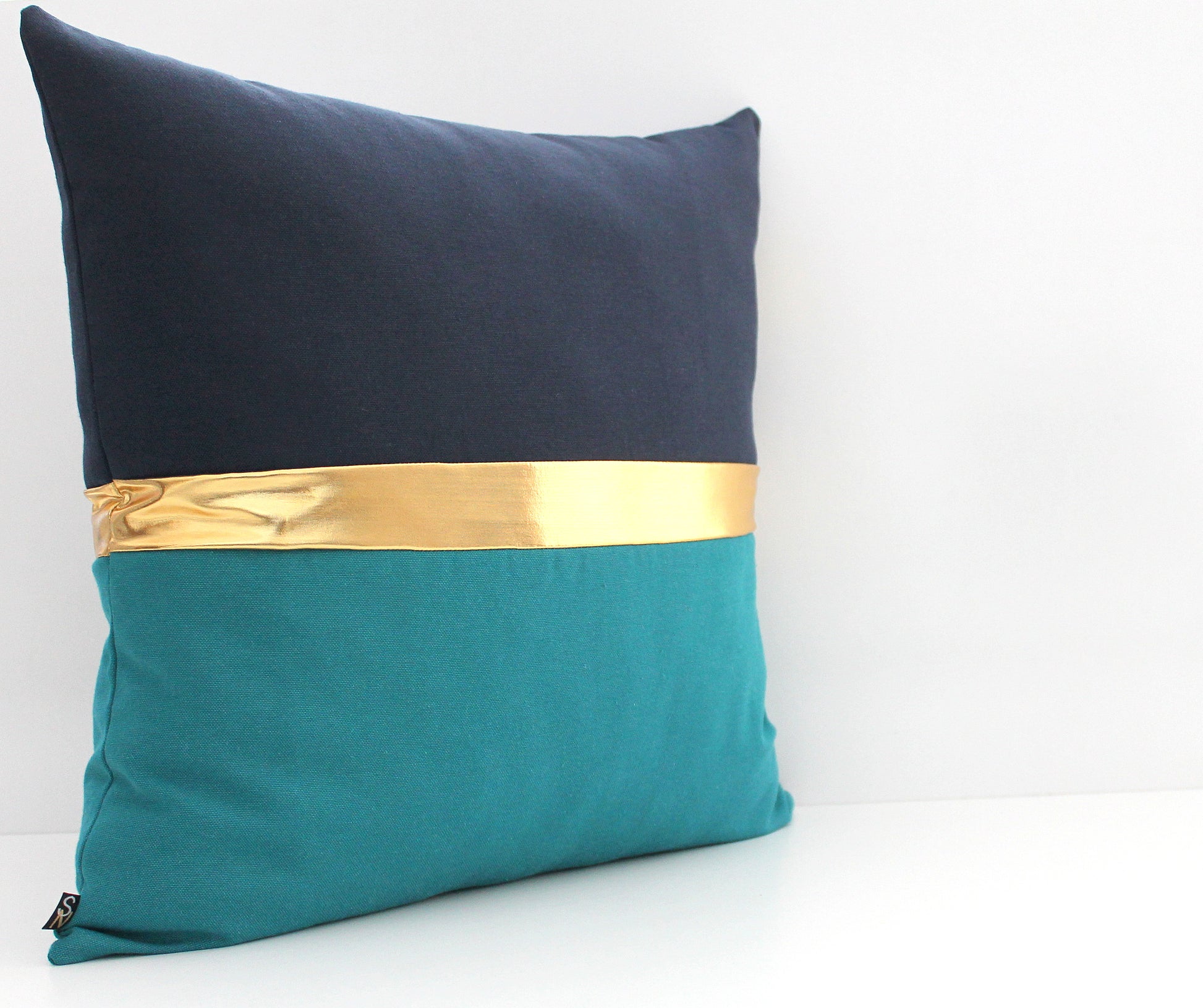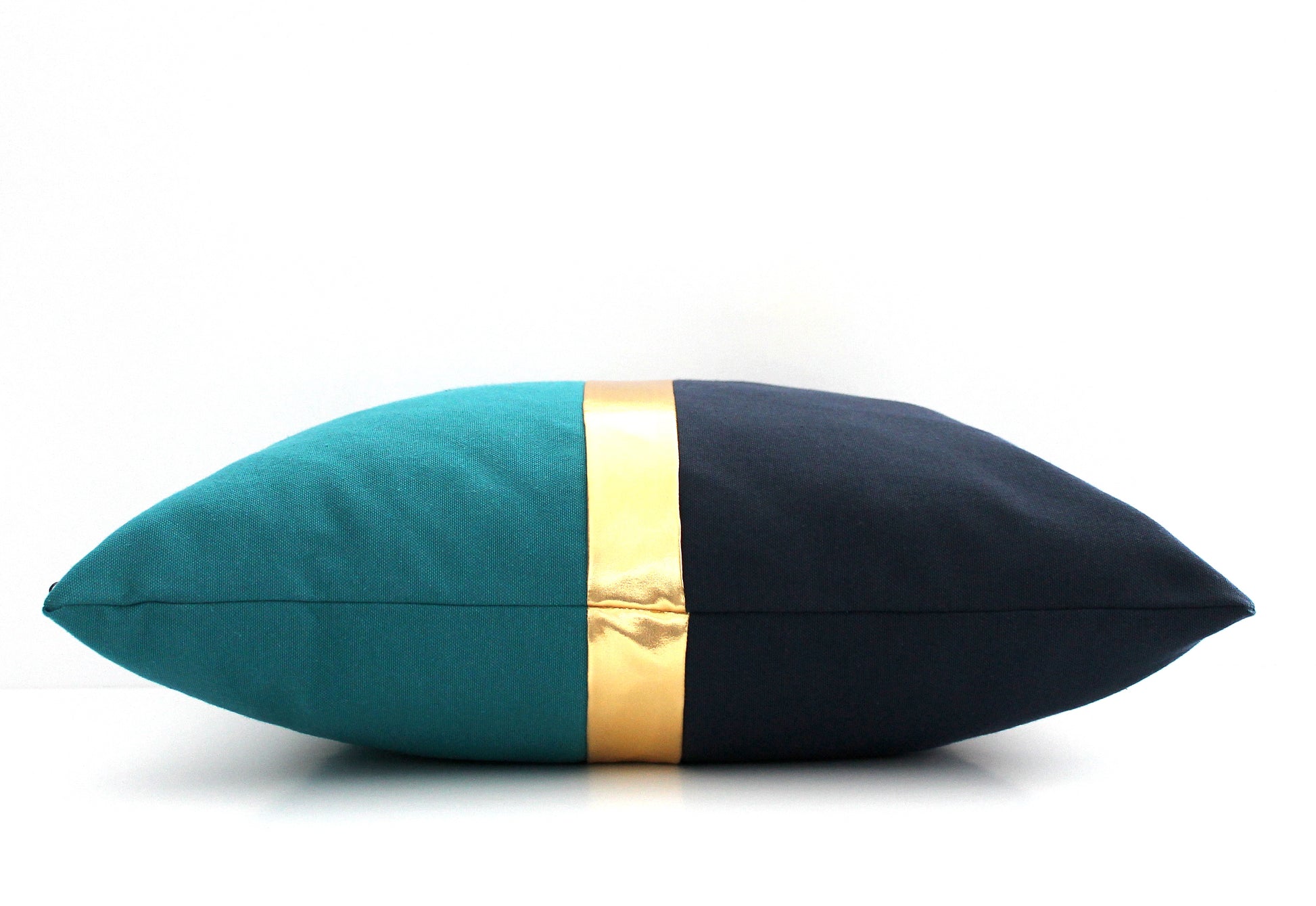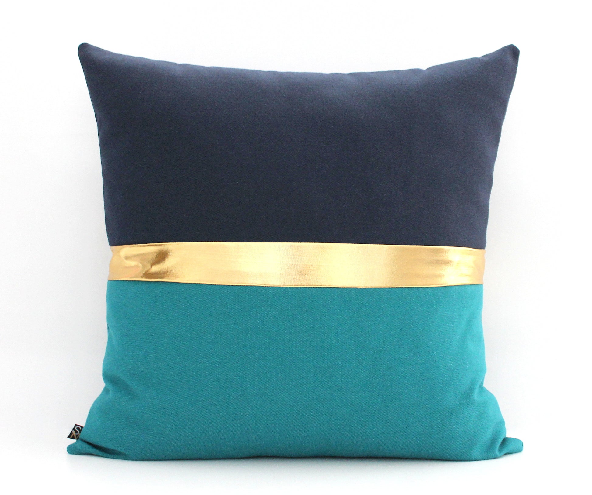 Dark Teal, Navy Blue and Gold Colorblock Pillow Cover - All Sizes, Custom Metallic Stripe Color