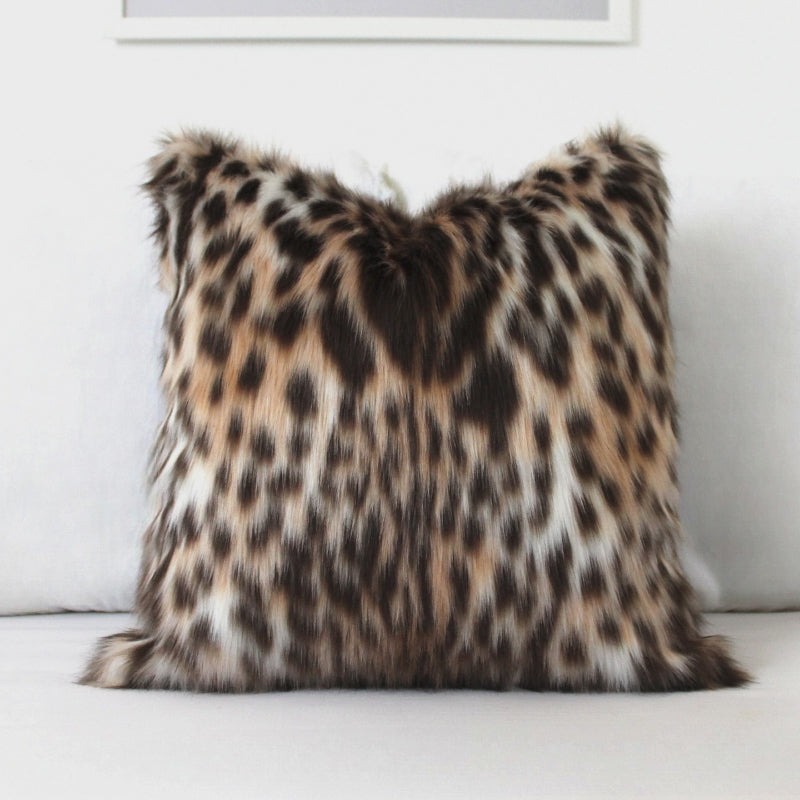 Faux Fur Leopard Pillow Cover, Custom Color Back