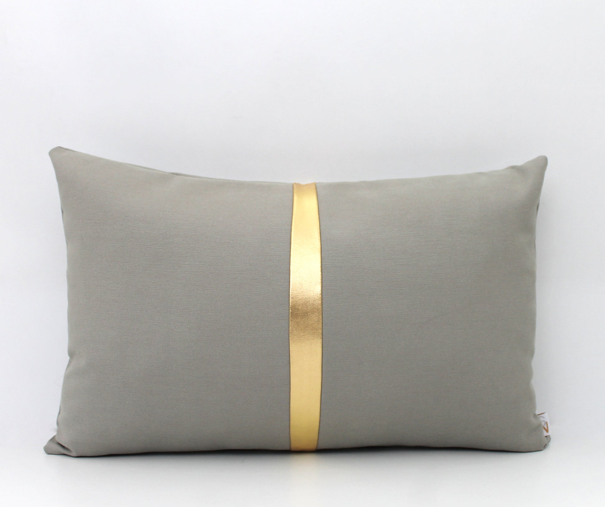 Light Grey and Gold Colorblock Pillow Cover - Custom Metallic Stripe Color