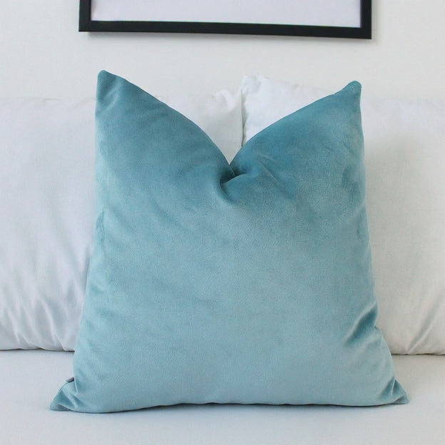 This Light Turquoise Velvet Pillow Cover brings fresh, airy elegance to modern interiors. The soft sea-glass blue shade evokes calm coastal palettes while the smooth velvet texture adds quiet luxury. Light enough to brighten neutral sofas yet refined enough for layered designer styling, it works beautifully in contemporary, coastal, and Scandinavian spaces.