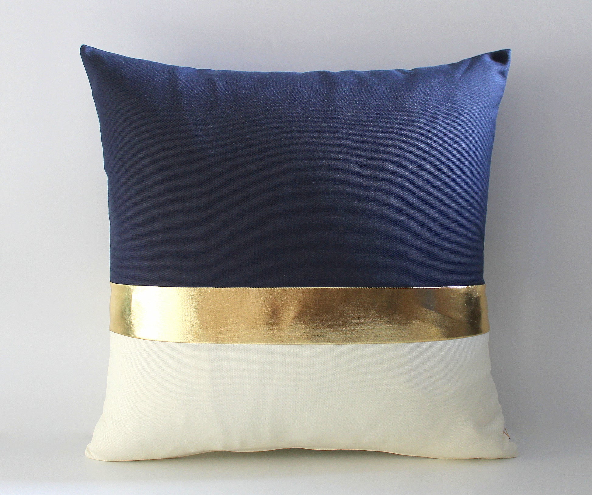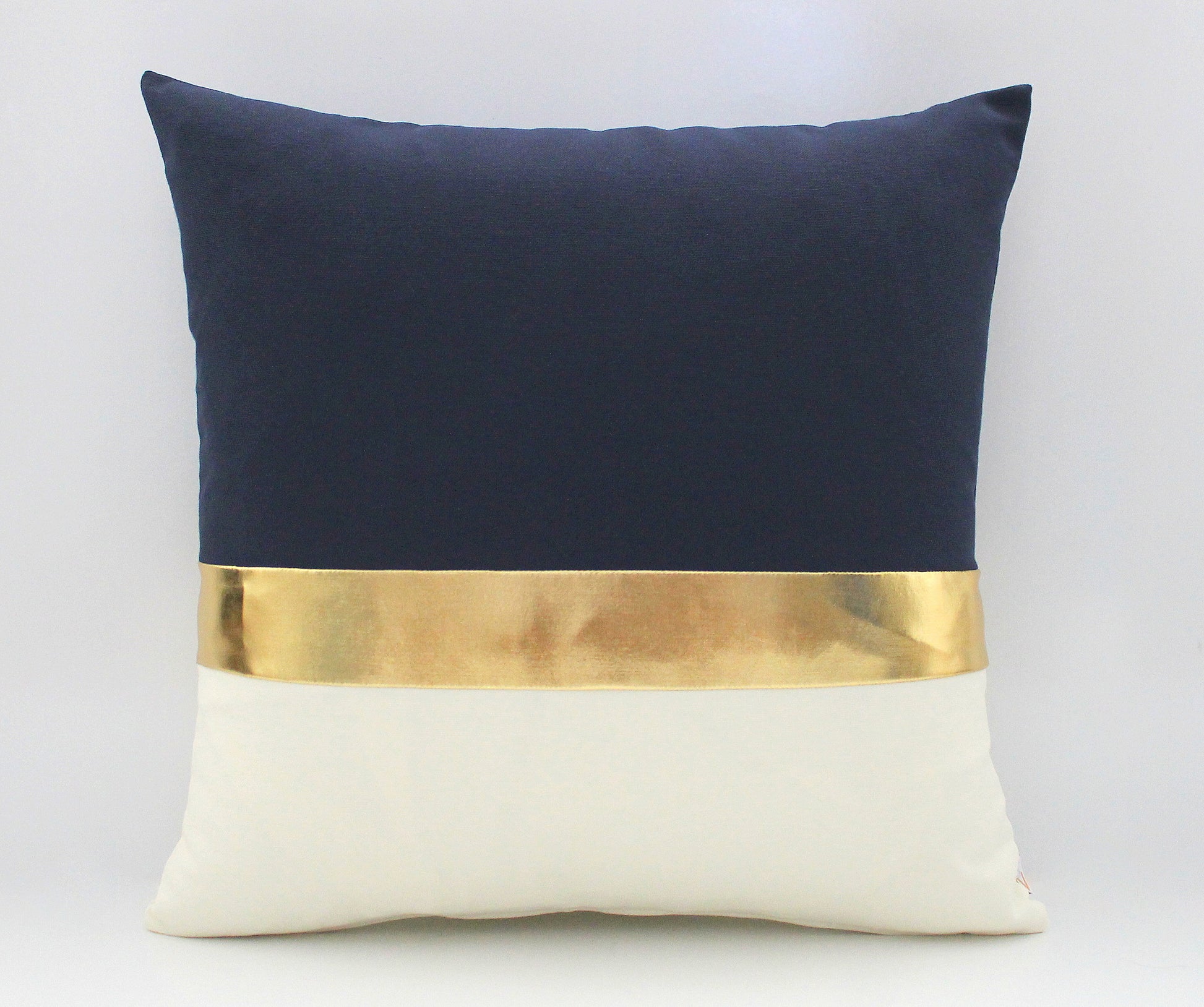 Navy Blue, Cream and Metallic Gold Colorblock Pillow Cover - Custom Metallic Stripe Color