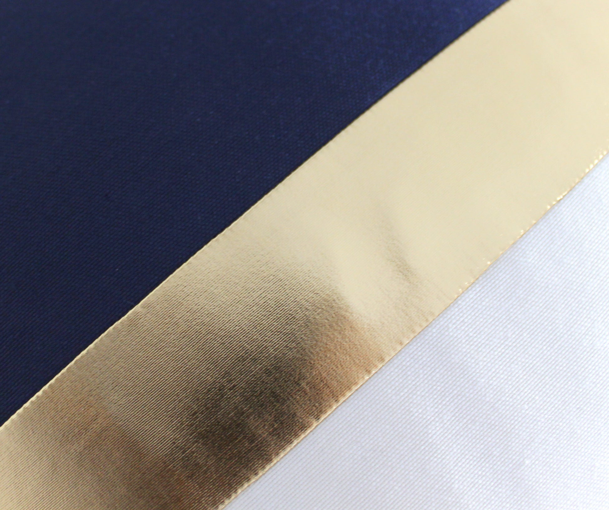 • Colors: Navy blue, cream and a metallic center stripe.